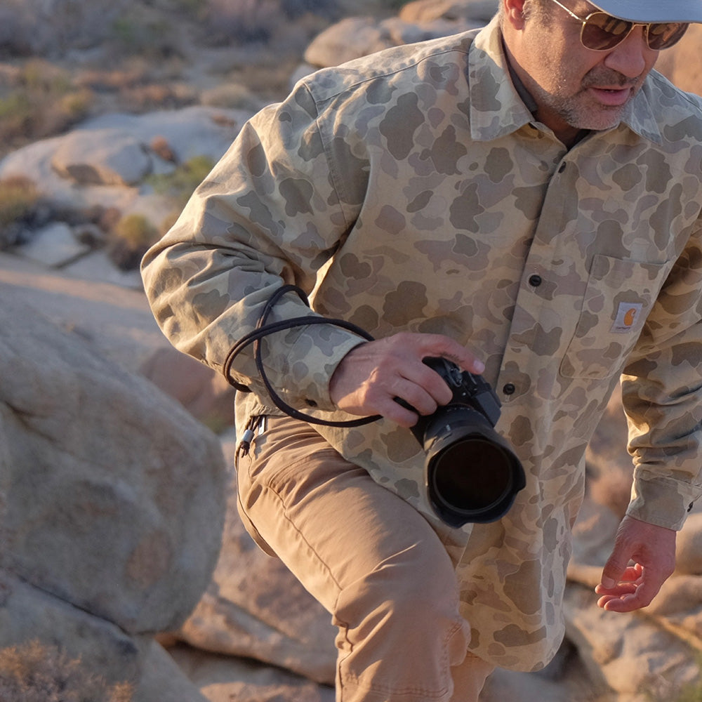 A first-of-its-kind design using ¼" paracord and Colfax’s first of its kind built-in daisy chain gear rope loops. Inspired by the makeshift sling systems of war photojournalist and climbers alike, the strap features a lightweight aluminum carabiner (NOT FOR CLIMBING) for fast adjustment or to clip gloves, a lens pouch, or a ditty bag. Whether it’s snugged across your chest while bushwhacking or hanging from a roll bar in the Sahara, it stays put and stays ready.